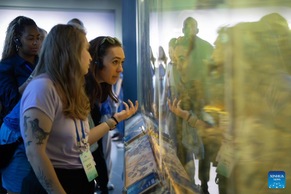 Participants taking part in a China-U.S. youth exchange program visit a conservation center for Yangtze River rare fishes in Yichang, central China’s Hubei Province, June 11, 2024.(Xinhua/Du Zixuan)