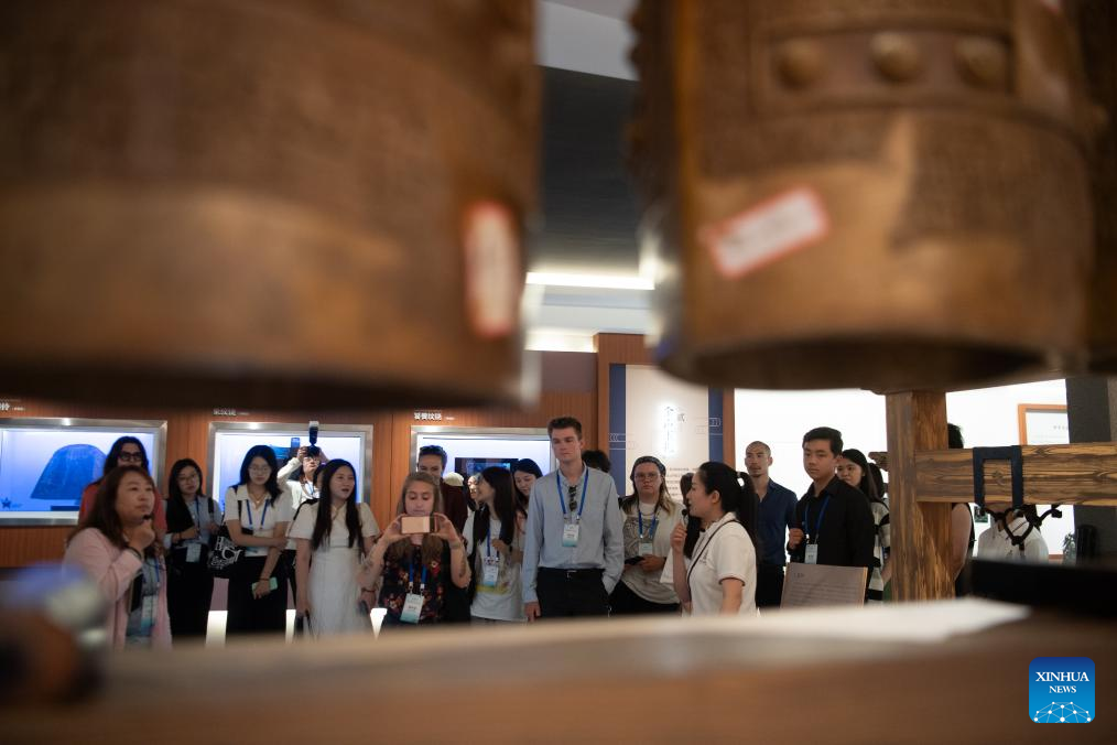 Participants taking part in a China-U.S. youth exchange program visit Hubei Provincial Museum in Wuhan, central China’s Hubei Province, June 9, 2024.(Xinhua/Du Zixuan)