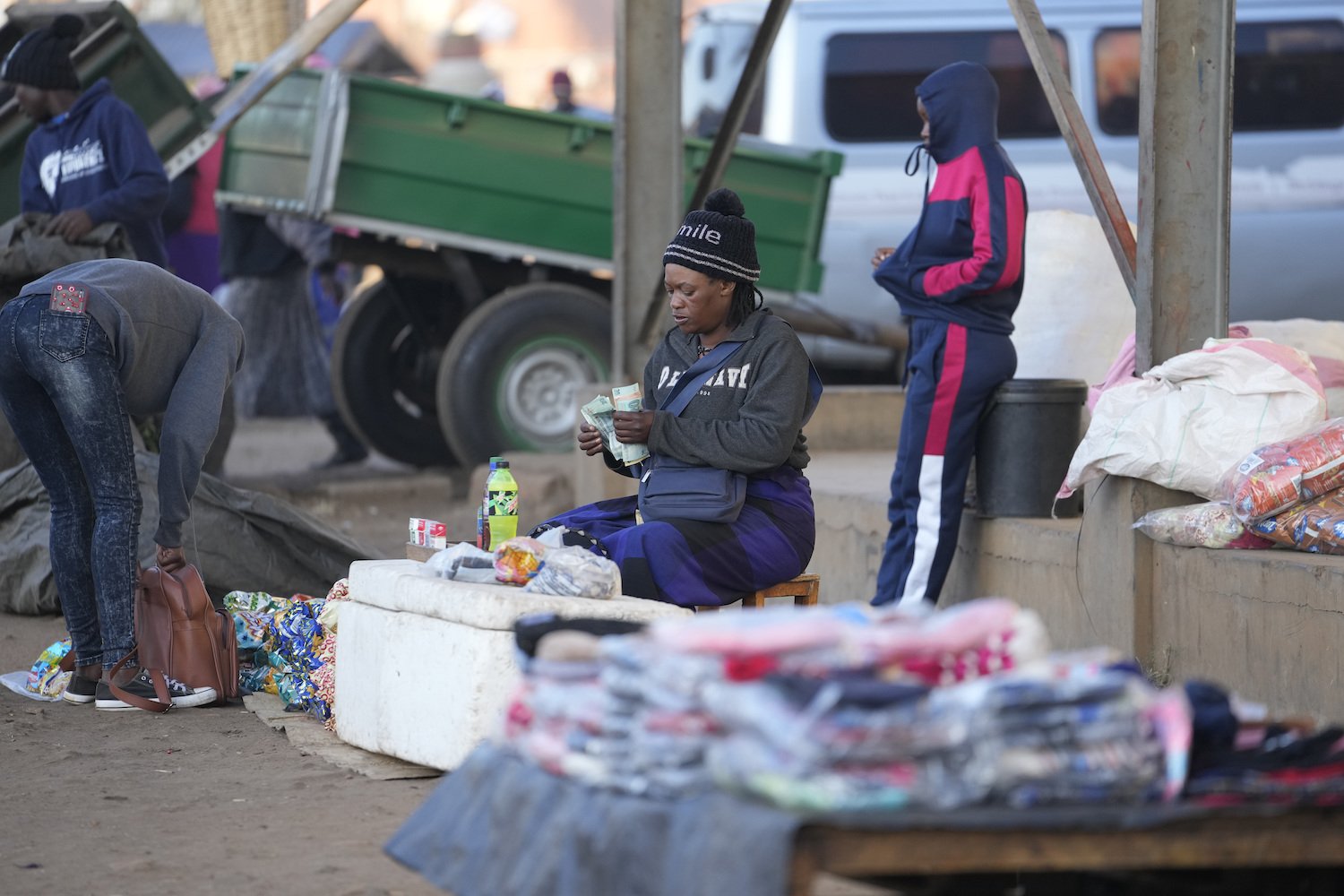 A vendor counts her money after making a sale in Harare, Thursday ,June, 2, 2022. Rampant inflation is making it increasingly difficult for people in Zimbabwe to make ends meet. Since the start of Russia’s war in Ukraine, official statistics show that Zimbabwe’s inflation rate has shot up from 66% to more than 130%. The country’s finance minister says the impact of the Ukraine war is heaping problems on the already fragile economy.