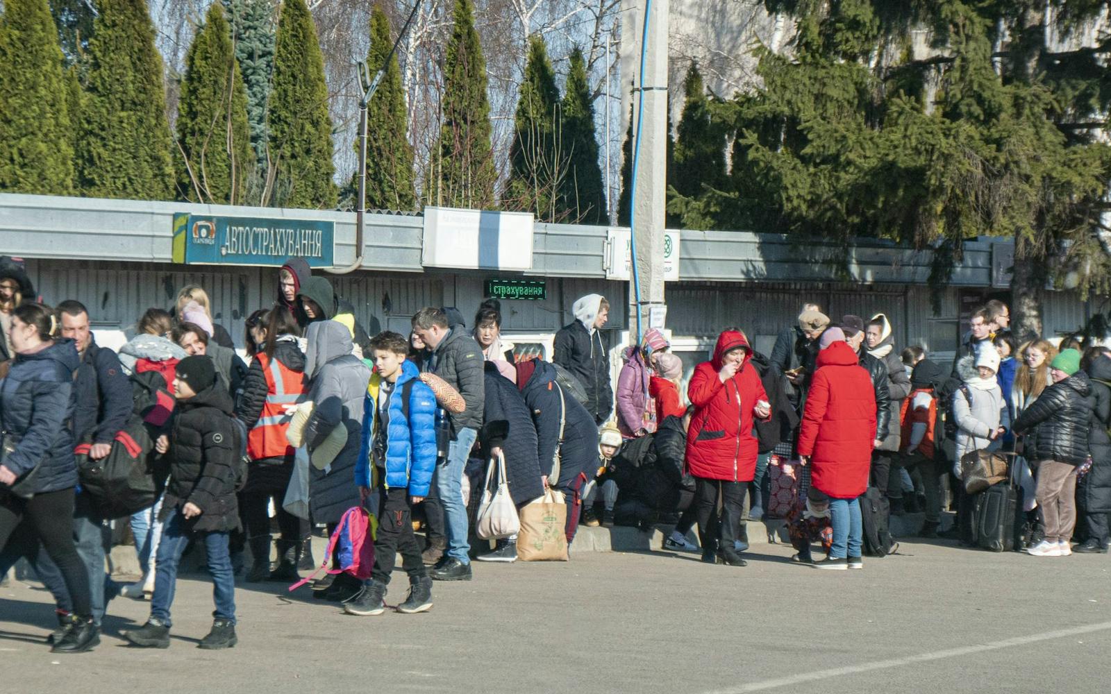 Ukrainian war refugees wait in a long line at the border to cross into Poland. Displaced people, many of them women and children, wait up to eight hours, carrying with them just the basics, usually only a backpack. PHOTO: Nicolas Economou/NurPhoto via Getty Images