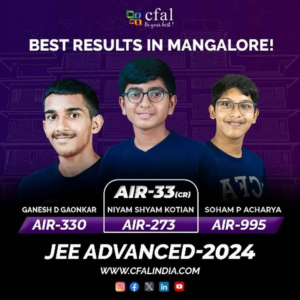 Mangaluru: In an impressive display of scholastic prowess, students from the Centre for Advanced Learning (CFAL) in Mangalore have once again distinguished themselves in the JEE Advanced 2024 examination.