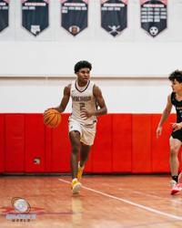 Trison Wilson, Miami Norland basketball player and senior, pictured dribbling on the court.