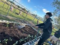 Miami Norland High School Senior Triston Wilson waters plants at his school’s garden.