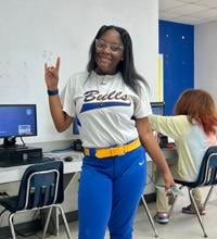 Shecaria Knight, a Miami Northwestern softball player and senior, poses in her uniform.