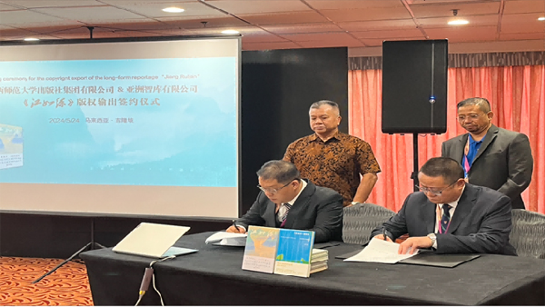 In 2024, commemorating the 50th anniversary of diplomatic relations between China and Malaysia, Guangxi Normal University Press Group and Asia Think Tank Company sealed a trade agreement at the World Trade Center Kuala Lumpur for the Bahasa Malaysia edition of Jiang Ru Lian (literally meaning “river as silk”).