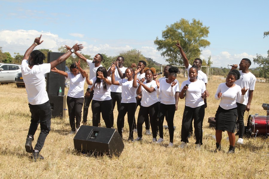 The Confucius Institute choir at the University of Zimbabwe sings a Chinese song during a China-Zimbabwe cultural exchange event in Goromonzi, a rural community in Mashonaland East Province, Zimbabwe, on May 23, 2024. (Xinhua/Tafara Mugwara)