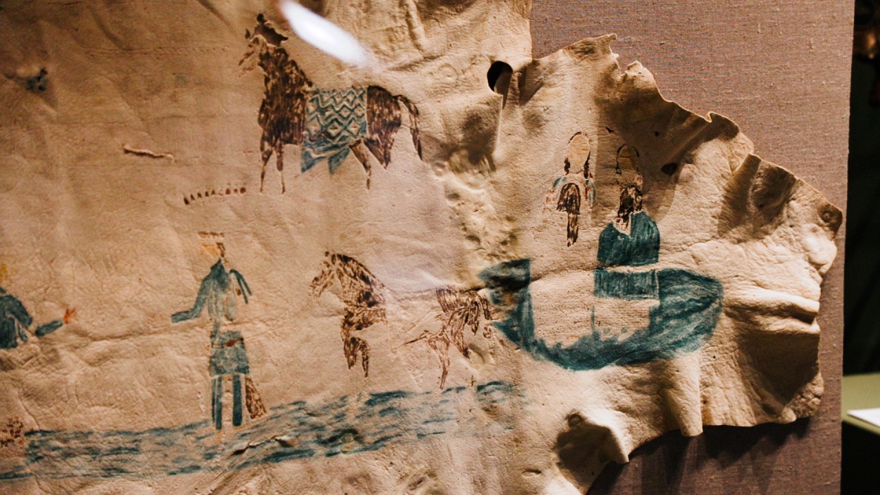 This buffalo-hide artwork hangs in the permanent exhibit in the Southern Ute Cultural Center and Museum.
