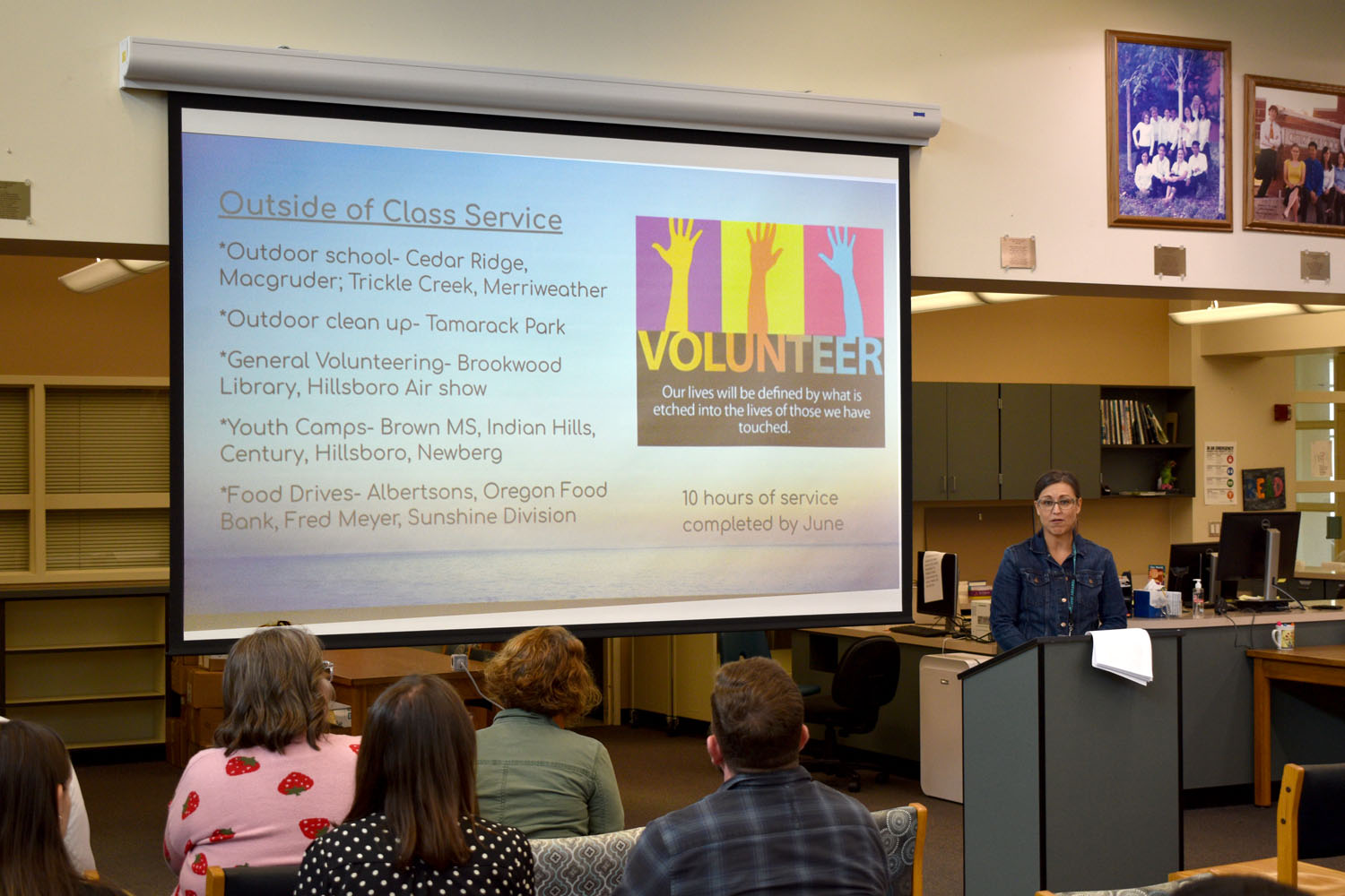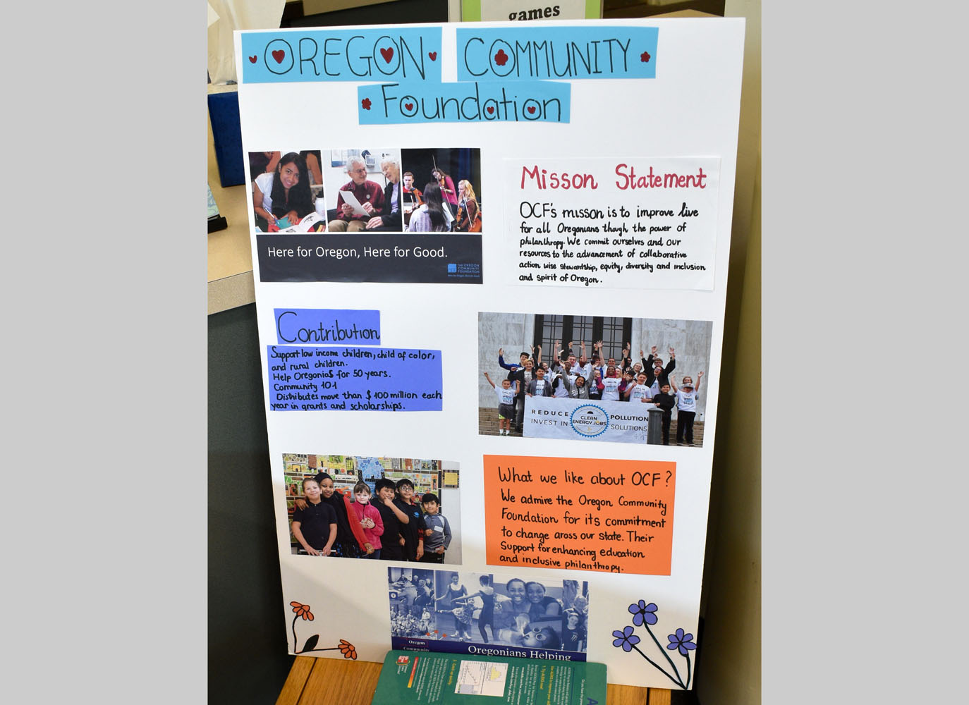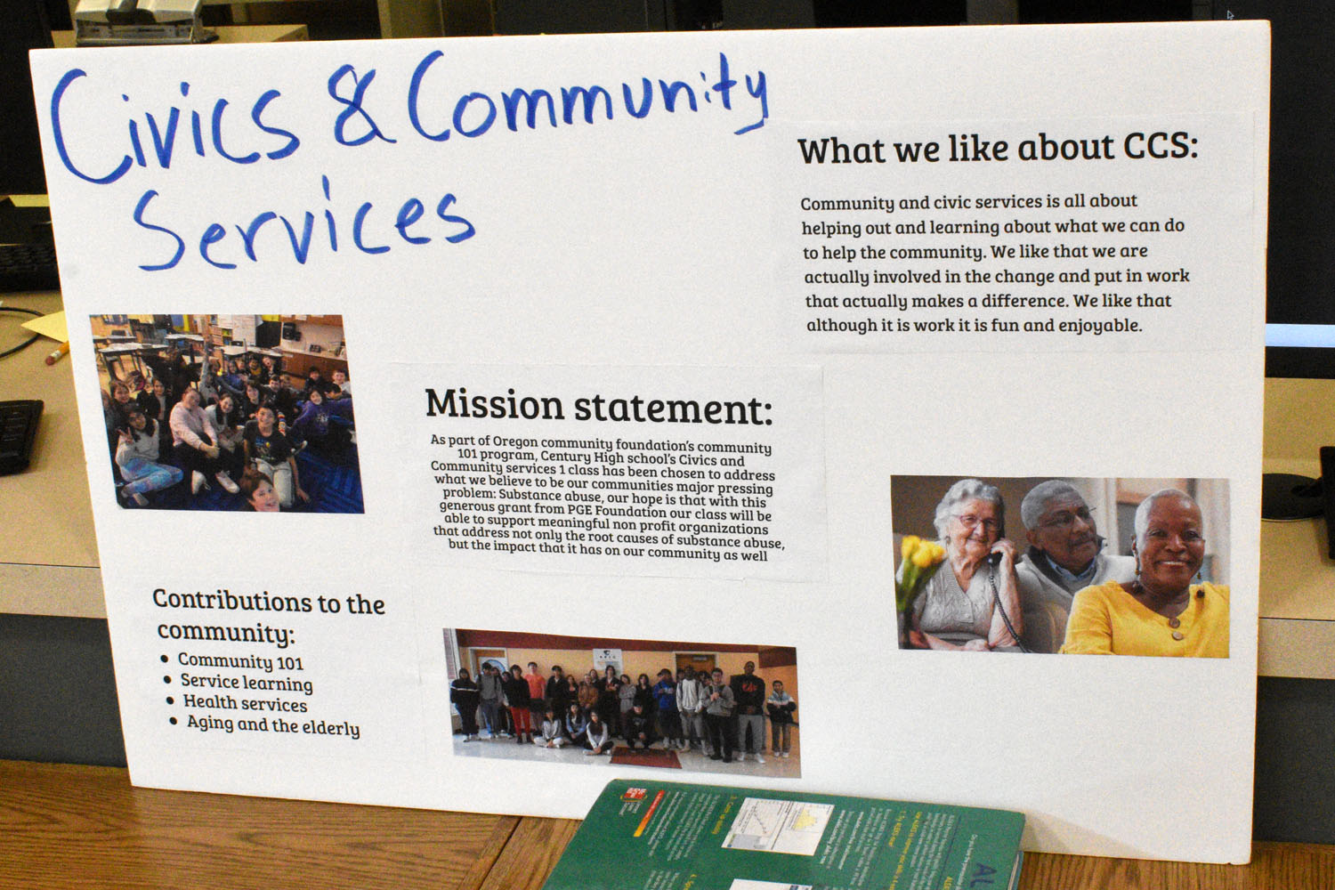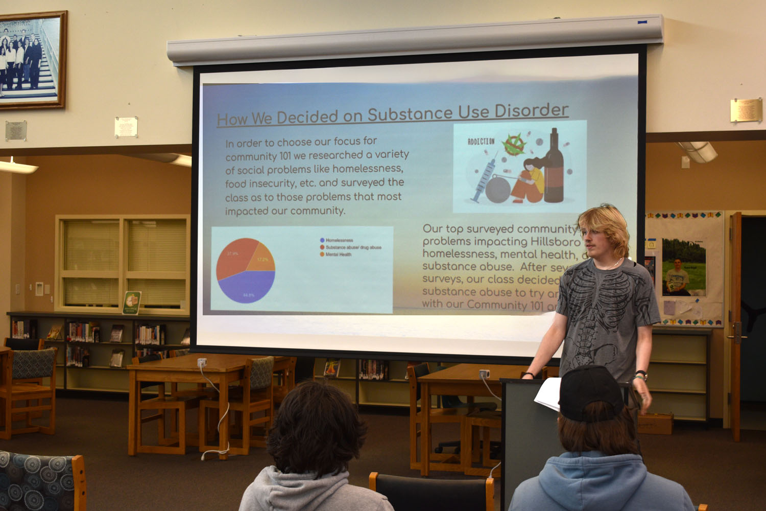 Community 101 is a class taught by Erica DeBois that prepares juniors for careers that involve working with and helping people in our community. Thanks to generous support from the PGE Foundation by way of the Oregon Community Foundation, students have access to $5,000 that can then be given as grants to nonprofit organizations. Students spend time researching community needs and determining an area of focus. From there, they identify local charitable organizations that specialize in meeting that need. They solicit proposals from organizations, vet them, and determine which of them will receive the grants. This year, students focused on organizations that address substance use disorder in the community and awarded their sub-grants to Youth Contact ($2,000) and For a Health ($3,000).