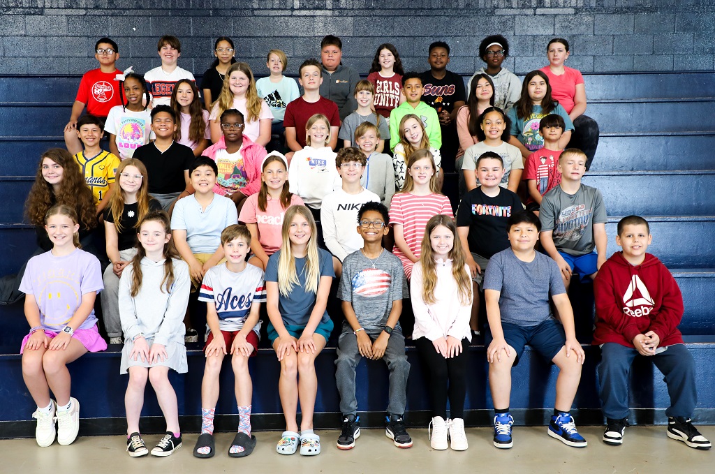 First row: Grace Biard, Raelee Bonner, Sawyer Boren, Anniston Bray, Anastacio Bridges, Zoee Cass, Allan Castillo Barrios, Tommy Cortines, and Rosa Davis. Second row: Kinslea Dunning, Ashton Gavrie Farren, Georgia Gibbs, Benjamin Gillem, Adalyn Graham, Gavin Hanley, and Conner Hendricks. Third row: Everett Hernandez, Alexander Johnson, Trezelle Johnson, Mason Norris, Ford Lindsey, Penelope Mathieu, Gabriella McGuire, and Jase McQuay. Fourth row: Kylie Mosley, Cora Neeley, Landyn Nelms, Garrett Lane, Claire O’Bryan, Isaac Oliva, Emiko Omori, and Aubree Peralta. Fifth row: Andre Plascencia, Harper Putnam, Michelle Reynaga, Fletcher Rogers, Ezequiel Segovia, Addelyn Welch, Ce’darian Wooten, Shaunessy Wortham, Olive Young, and not pictured Krish Bacharanianda.