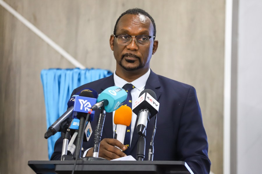 Ethiopia’s State Minister of Education Kora Tushune speaks at the “Chinese Bridge” Chinese Proficiency Competition for Ethiopian college students in Addis Ababa, Ethiopia, on June 5, 2024. (Xinhua/Michael Tewelde)