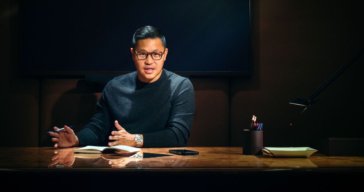 Christopher Rim makes himself hard to get to. First, there’s the email to register as a guest at the Aman Club, where members pay an initiation fee of $200,000 to perch themselves above the crowds on Fifth Avenue and where Rim sometimes holds his client meetings. Then there’s the check-in at the front desk to get access to the elevator, which leads to another reception area on the 14th floor. From there, a man in a suit guides me into the main room (fireplace, lots of couches, mostly empty), then through a door that blends into a wall, past a bar (one guy drinking water; it’s only noon), and up a narrow flight of stairs. It’s there that I meet Rim in a small room decorated with bottles of Macallan 18 and coffee-table books about art.