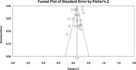 Figure 2. Funnel plots of effect sizes of the correlation between ITI and student’s verbal domain achievement.