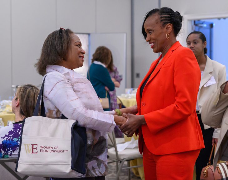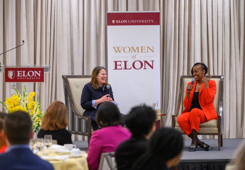 Joyner-Kersee’s conversation on Friday with President Connie Ledoux Book was a highlight of the two-day Women of Elon Weekend event that brought together dozens of women to connect more deeply with the Elon community and foster personal and professional growth. The conference extends Elon’s efforts to engage women in philanthropy and was organized by the Women of Elon Advisory Council, which includes a diverse network of alumnae, parents and friends of the university.