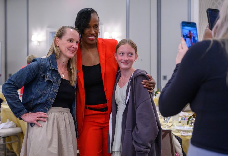 Drawing from questions suggested by those in the crowd, Book asked Joyner-Kersee to offer advice for young people today who are trying to perform and achieve at a high level. “You have to get out of your own way,” Joyner-Kersee said. “You have to trust. Faith is a part of everything I do. When you run into difficult situations and circumstances, it’s easy to abandon all you know. … I am a believer in focusing on the things I can control and not worrying about the things I cannot.”