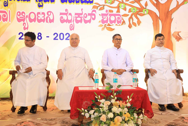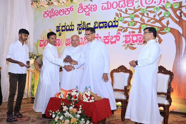 The ceremony was presided over by Msgr Maxim L Noronha, vicar general of the diocese and vice president of CBE. Distinguished guests included Fr Praveen Leo Lasrado, the current secretary of CBE, Fr Santhosh D’Souza, director of Shanthi Kiran Pastoral Centre Bajjodi, Msgr Lesly Shenoy, and Fr Vincent Robert Crasta, education secretary (SESU) of Udupi Diocese.