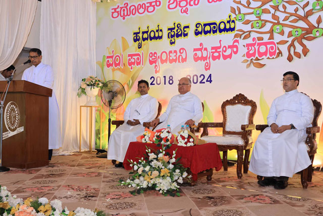 Mangaluru, Jun 11: The Catholic Board of Education (CBE) diocese of Mangalore hosted a felicitation and farewell programme for Fr Antony Michael Shera, who served as secretary from 2018 to 2024. The event took place on June 11, at Shanthi Kiran Hall, Bajjodi.
