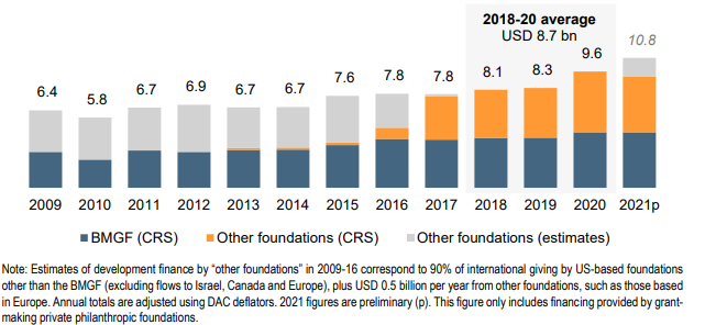 Figure 1: Private philanthropic flows for development (2009-2021)