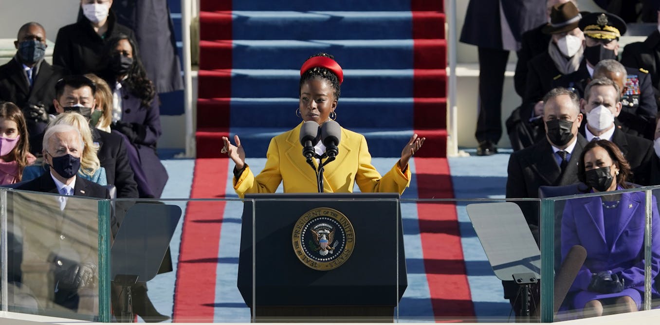 Gorman highlighted the power of poets in our current sociopolitical context to speak unique and timely truths, while tapping into larger literary traditions. Some commentators were reminded of the legacy of Black women poets like Maya Angelou and Elizabeth Alexander who delivered inaugural poems respectively at Bill Clinton’s and Barack Obama’s inaugurations. The ring Gorman wore was a tribute to Maya Angelou and a gift from Oprah Winfrey.