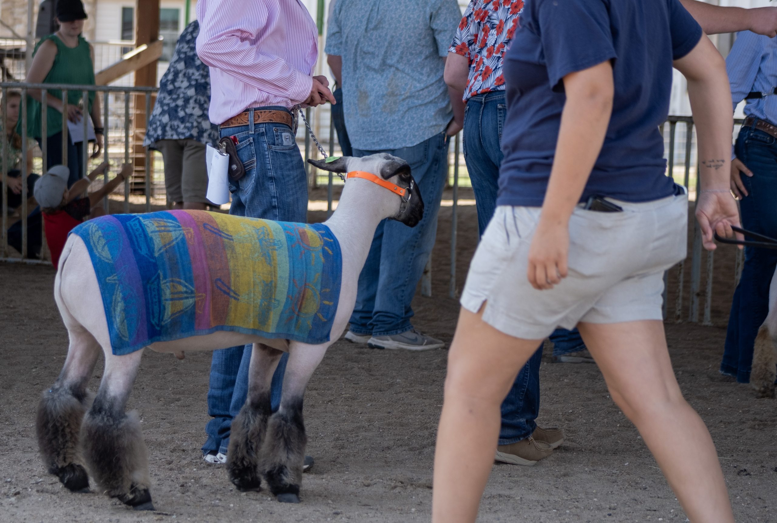 LIBERAL, KS– The sound of bleating sheep and goats precede giggling children as they run in their boots across the dirt and gravel. Most of them are accompanied by their own sheep, goat, pig, or cow as they guide them to the livestock barn– some are a little more reluctant than others.