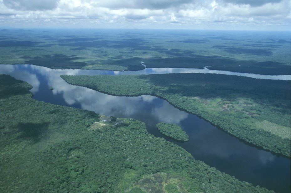 The largest forest in the world, the Amazon rainforest encompasses approximately 6.9 million km² – roughly the size of the 48 contiguous states of the USA. It spans eight countries in South America, including Brazil, Bolivia, Peru, Ecuador, Colombia, Venezuela, Guyana and Suriname, as well as the overseas territory of French Guiana.