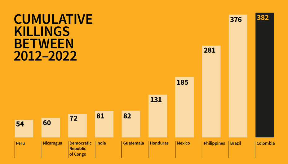 The situation in Latin America remains particularly concerning. In 2022, the region accounted for 88% of killings – an ever-growing majority of the world’s cases. A total of 11 of the 18 countries where we documented cases in 2022 were in Latin America.