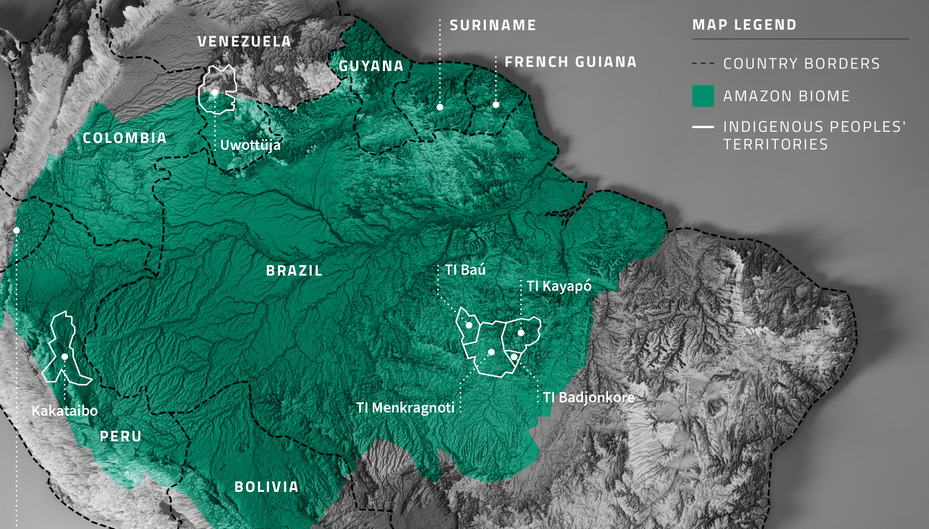 The Kayapó Indigenous peoples in Brazil, the Uwottüja Indigenous peoples in Venezuela, and the Kakataibo and Shipibo- Konibos Indigenous peoples in Peru are from distant corners of the Amazon, and yet they are connected by shared experiences of abuse and destruction inflicted by those who see the rainforest as merely an opportunity to line their pockets. They are also connected by their determination, against all odds, to protect their territories and the Amazon rainforest.