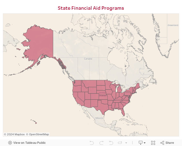 The map below lists some of the financial aid programs offered by states to undergraduate students. Click on a state to learn more about its financial aid opportunities.