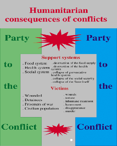 The direct impact of armed conflict on people and on the systems essential to their survival is highly visible but it should not be forgotten that the priority for the warring parties is their military operations, not the smooth operation of economic and social structures. The result is a gradual deterioration of these structures, even in situations where they are not directly targeted by the combatants.