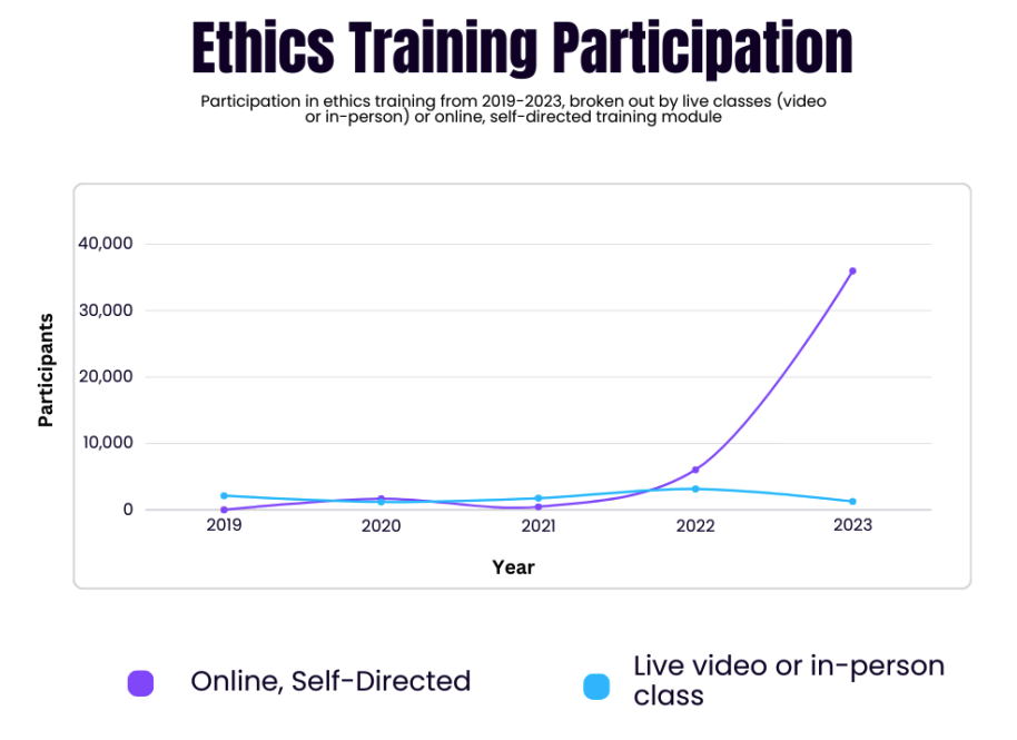 The commission now reports that there was an 806% average participation increase — that is NOT a typo — in ethics training last year as compared to the past four years.