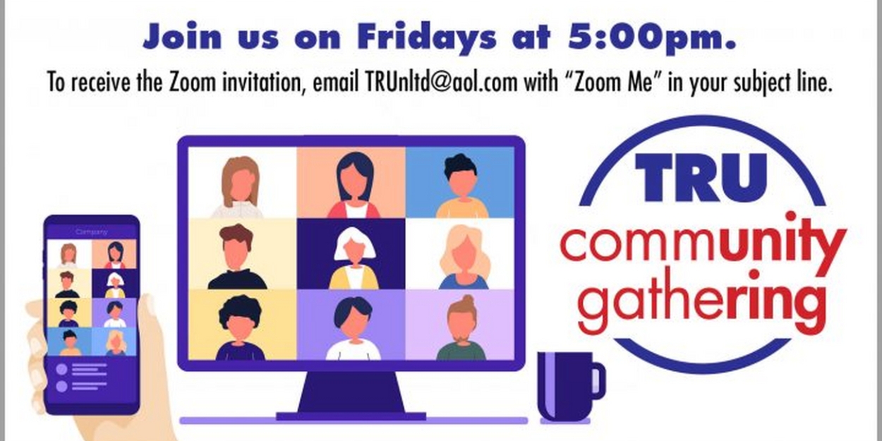 Check back at TRU’s web page for future 2024 gatherings: truonline.org/tru-community-gathering. To receive the Zoom invitation for weekly meetings, email TRUnltd@aol.com with “Zoom Me” in the subject header. These gatherings are free for TRU members, non-members are asked to make an optional tax-deductible donation or consider joining TRU at truonline.org/membership to support the organization during these challenging times.
