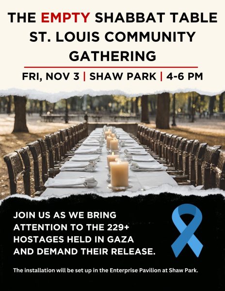 On Friday night, the Empty Shabbat Table Gathering will take place here in St. Louis.
