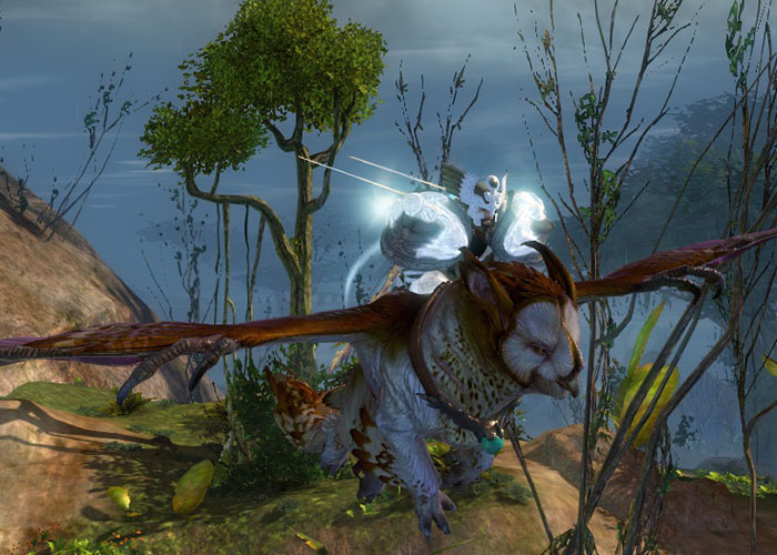 Players can unlock several secret mounts, like the Griffon above, to assist them in their adventures around Tyria.
