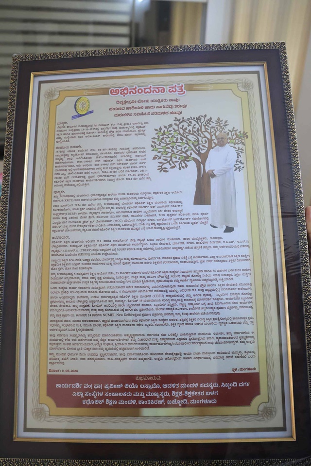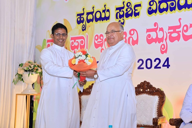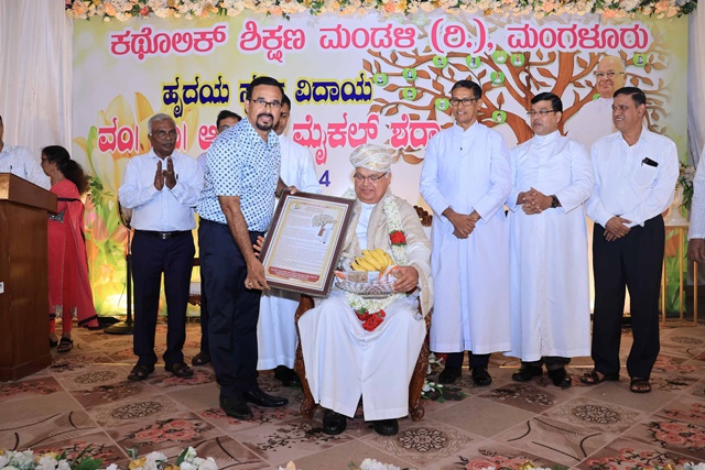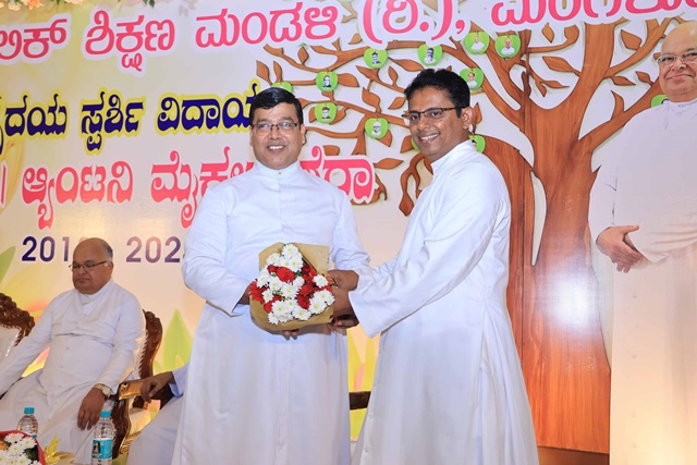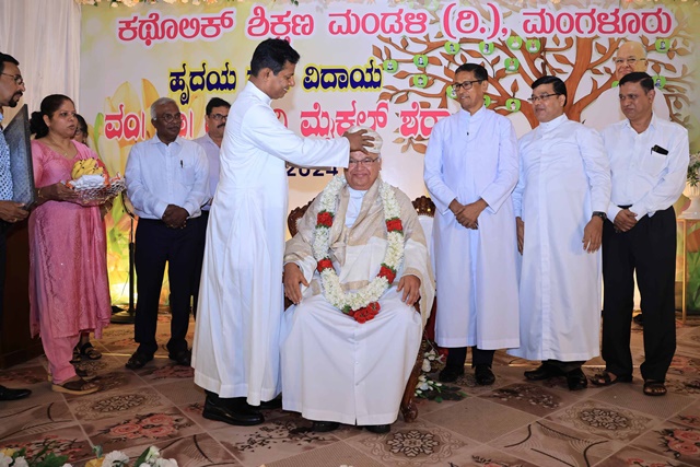 Rev. Dr Antony Prakash Monteiro, Principal of St Philomena College Puttur, delivered words of felicitation for Fr Shera, while Mr Aloysius Dsouza, Headmaster of St Aloysius English Medium School, Urwa, Mangalore, read the scroll of honor.