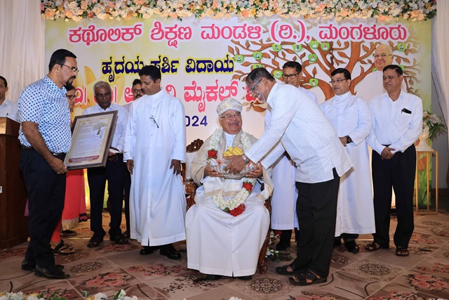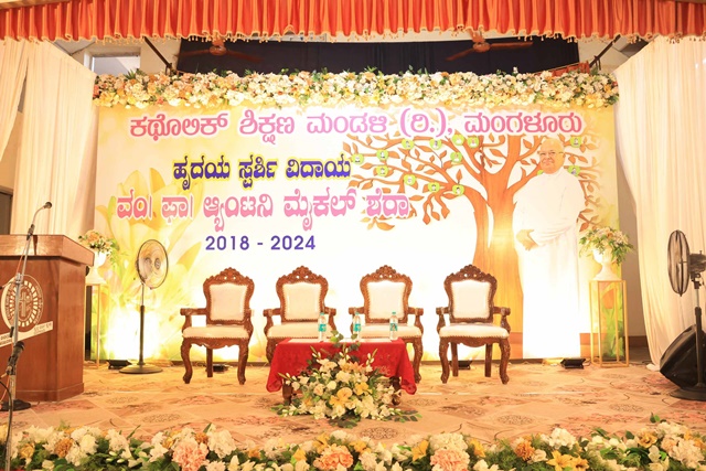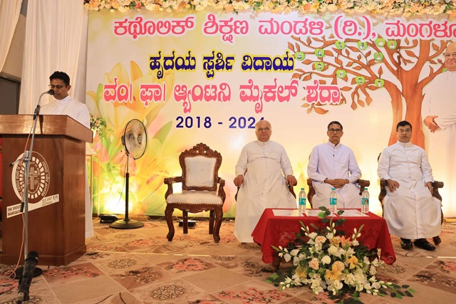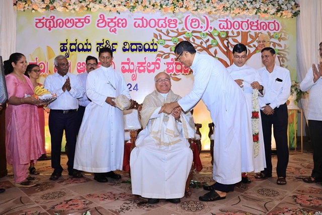 Mangaluru, 13 June 2024: The Catholic Board of Education (CBE) Diocese of Mangalore hosted a felicitation and farewell program for Rev. Fr Antony Michael Shera, who served as Secretary from 2018 to 2024. The event took place on June 11, 2024, at Shanthi Kiran Hall, Bajjodi, Mangalore.