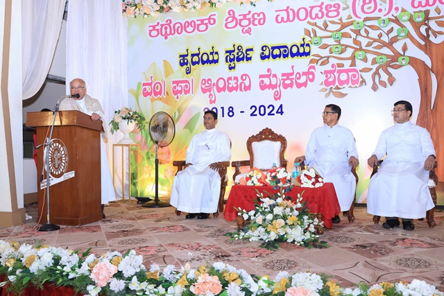 In his presidential address, Msgr. Noronha praised the contributions of Fr. Shera, stating, “CBE is like a banyan tree, grown huge, imparting quality education to thousands of students for long years in South Canara and Udupi.” He commended Fr Shera’s administrative leadership, visionary thoughts and dedicated service, wishing him well on behalf of the diocesan bishop and the governing body members.