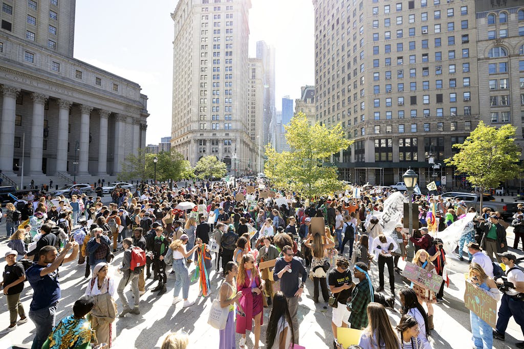 Young people gather at Foley Square in New York City on Sept. 23, 2022 for the Fridays for Future NYC Global Climate Strike. Carbon Stories/UN Foundation