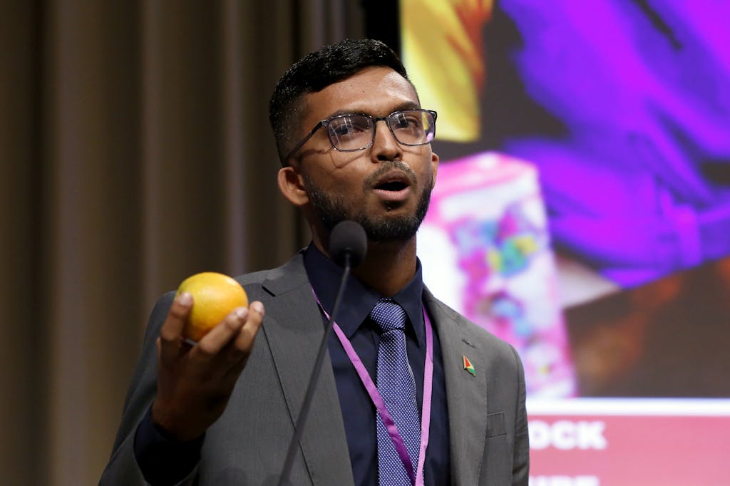 Mahendra Phagwah, Restless Development, makes his pitch for the Youth Solutions Challenge at Unlock the Future of Learning.